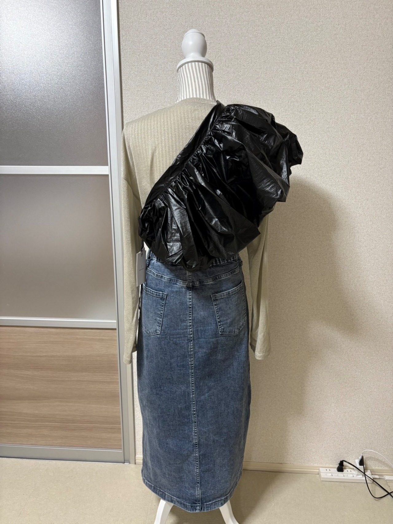 程よいボリュームながら厚みがしっかりありベルトで長さが調節可能なのでアウターにも合わせられます。