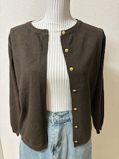 薄手で軽やかな金色ボタンが印象的なカーディガンです。シンプルかつカジュアルなデザインは、どんなスタイルにもマッチしやすく、幅広いシーズンで活躍するアイテムとなっています。上品なブラウンカラーは、モノトーンコーデやナチュラルスタイルにもぴったり!大人の女性におすすめの一着です。
